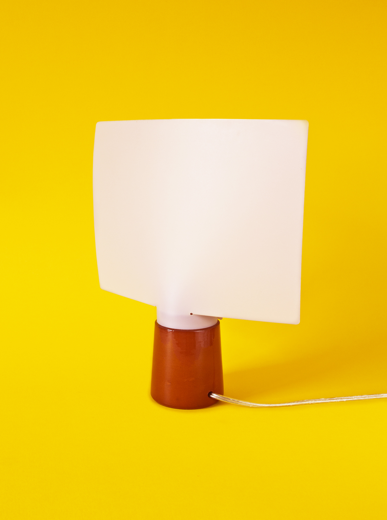 Each light presents a conical terracota base and a punched polypropylene lampshade which straps around it. After testing several clays and enamels, the lamp comes in many colors such as natural, red and black. Project in collaboration with Vania Fine and Martial Baudet, potter and ceramist.