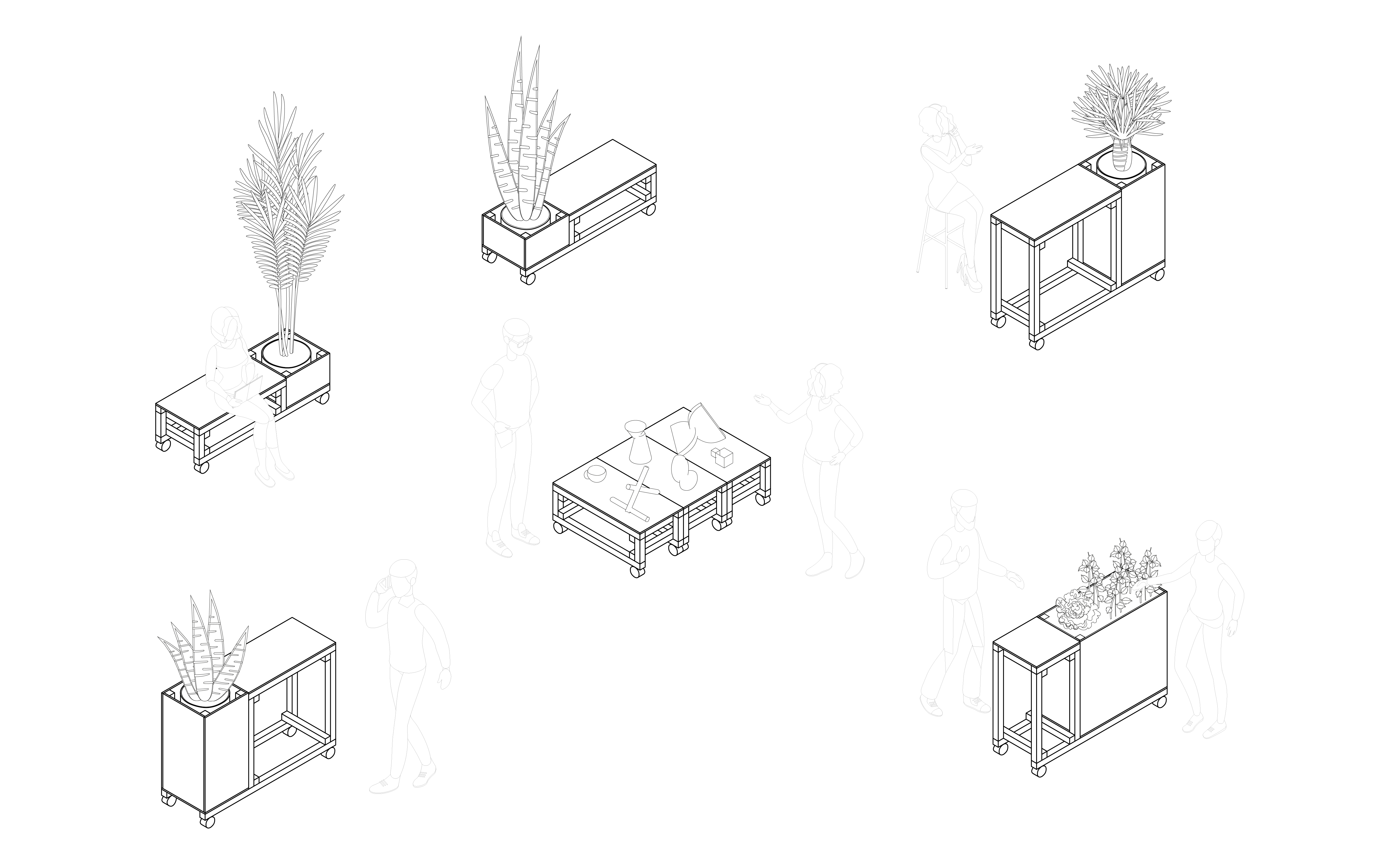 VEGETAL SERVICE is a typology of open-space office furniture.